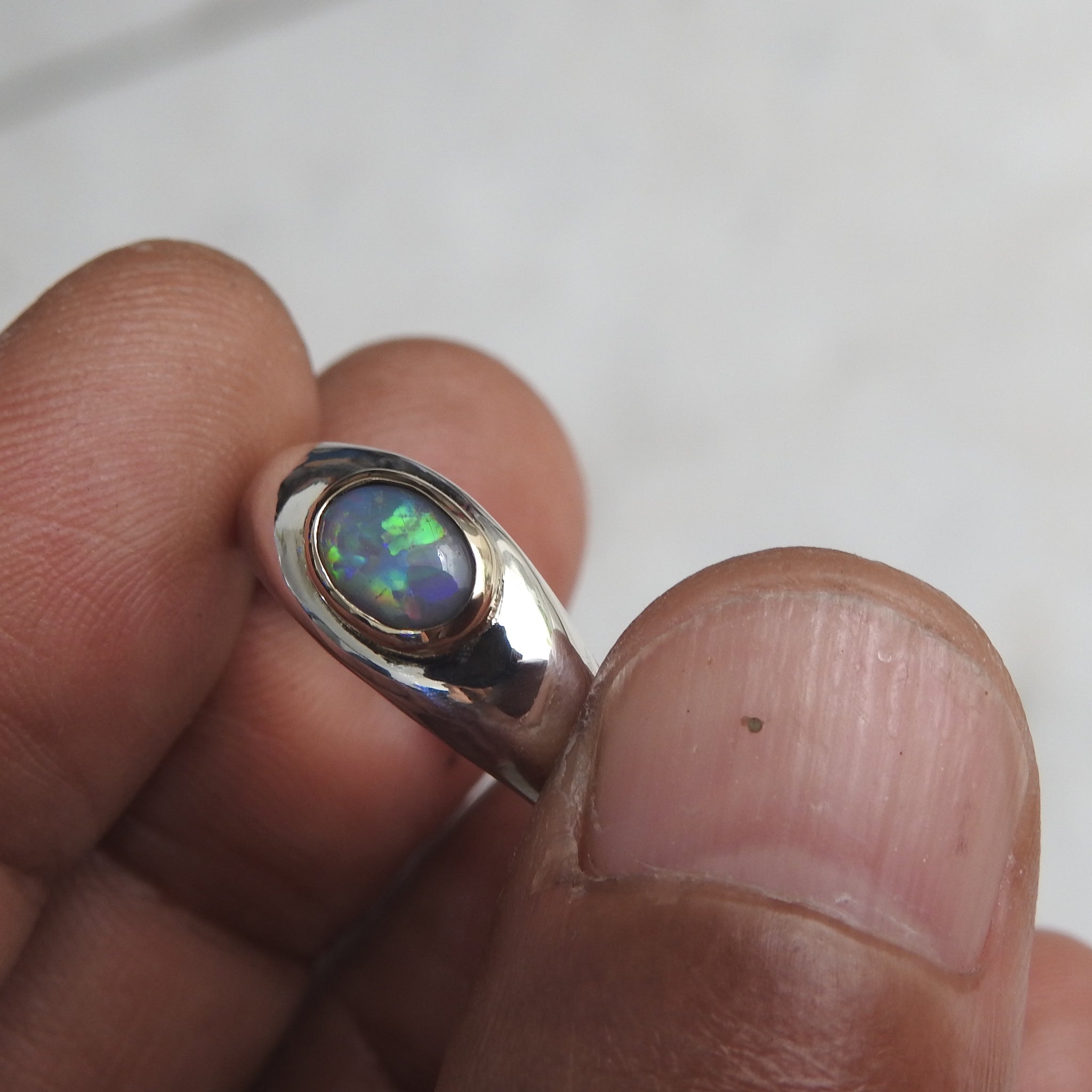 Lightning Ridge Solid Opal Combine Metal Ring