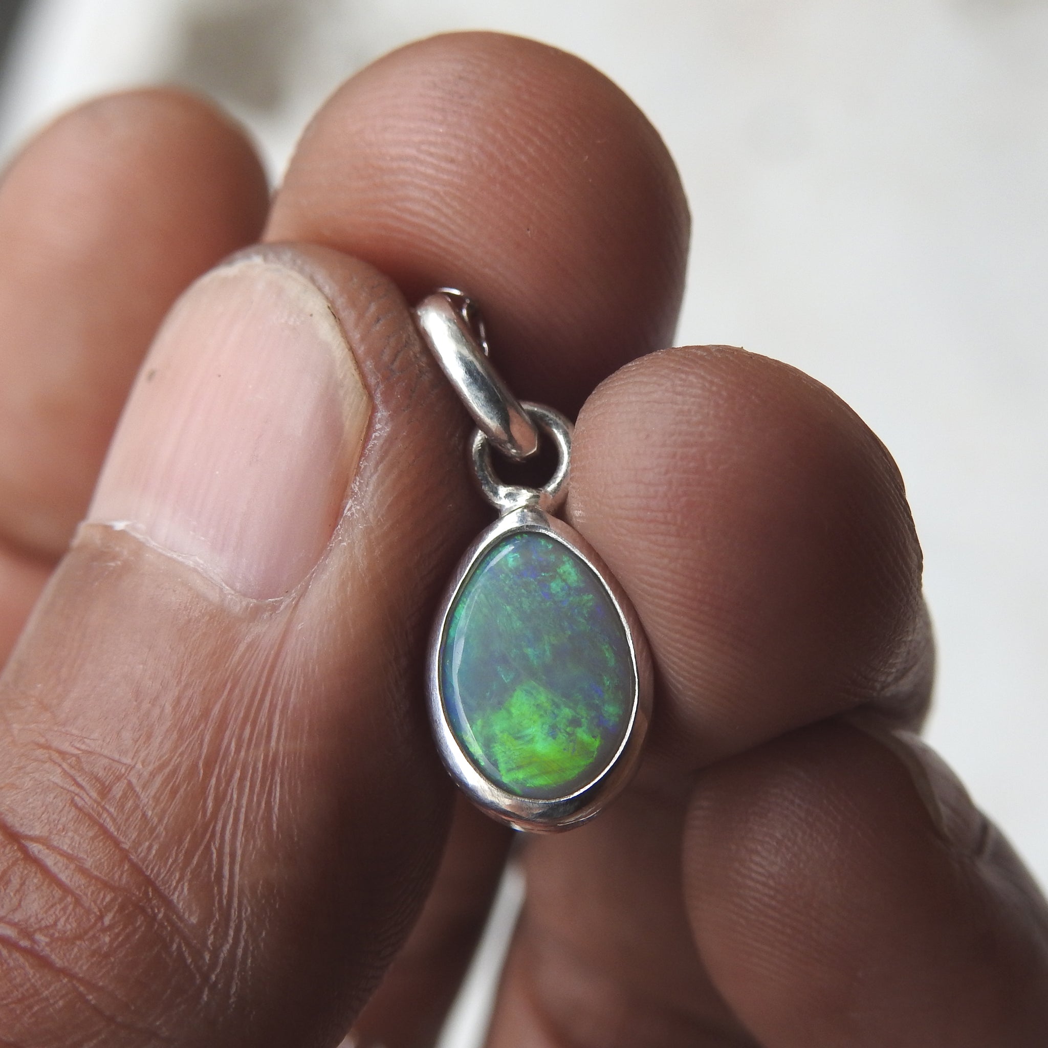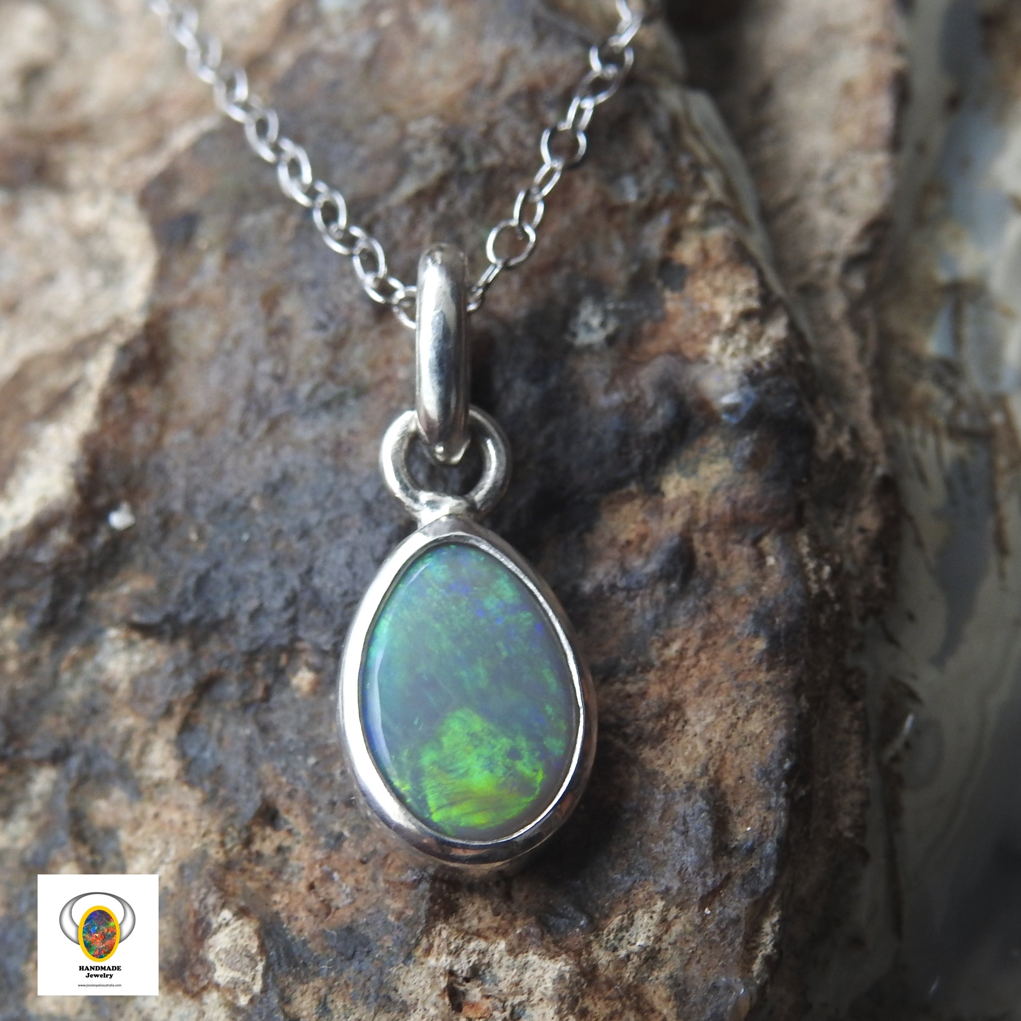Australian Solid Opal Sterling Silver Pendant 18" chain